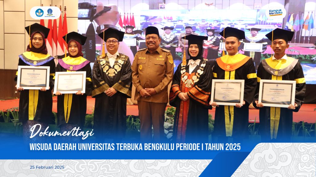 Bengkulu, 25 Februari 2025 – Universitas Terbuka (UT) Bengkulu menggelar Wisuda Periode I Tahun 2025 dengan jumlah lulusan sebanyak 486 wisudawan dan wisudawati. Acara berlangsung khidmat di Kota Bengkulu dan dihadiri oleh Wakil Gubernur Bengkulu, Ir. H. Mian, yang hadir mewakili Gubernur Bengkulu, bersama jajaran Forkopimda dan pimpinan perguruan tinggi di wilayah Bengkulu.