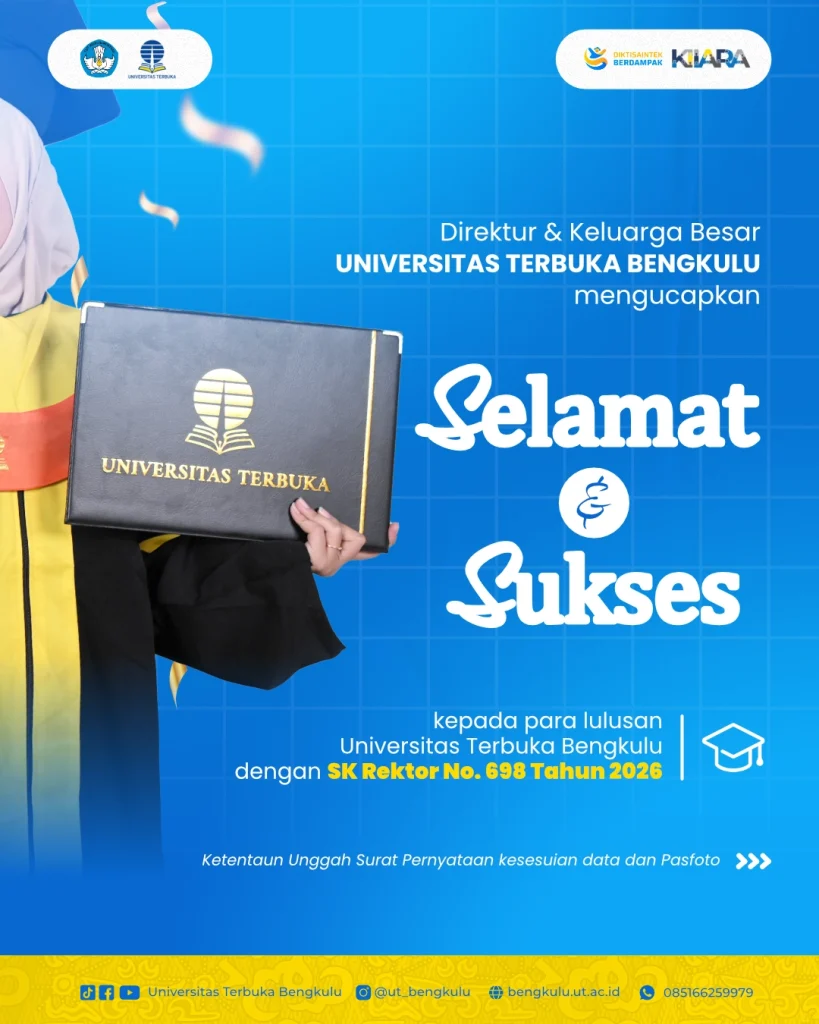 Bengkulu – Pada tanggal 16 Oktober 2024, Universitas Terbuka Bengkulu dengan sukses menyelenggarakan Workshop Penulisan Karya Ilmiah di Era Digital yang diadakan secara virtual melalui platform Zoom. Acara ini dihadiri oleh 371 peserta di zoom yang terdiri dari mahasiswa, dosen, dan Penanggung Jawab Wilayah UT Bengkulu.